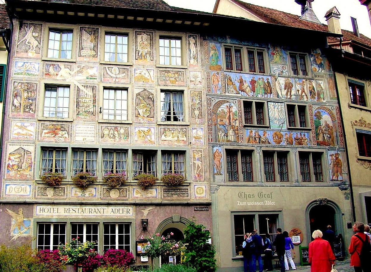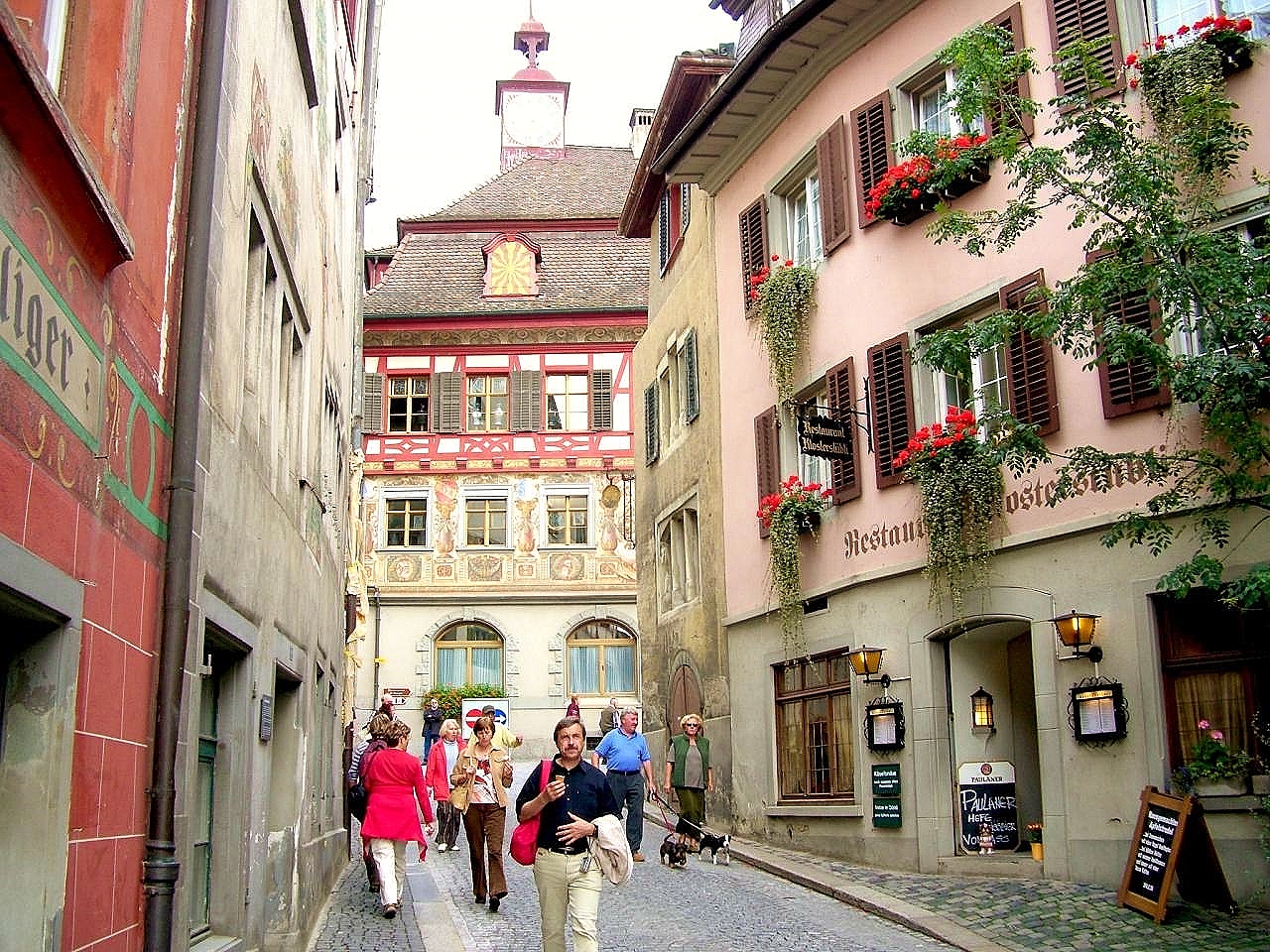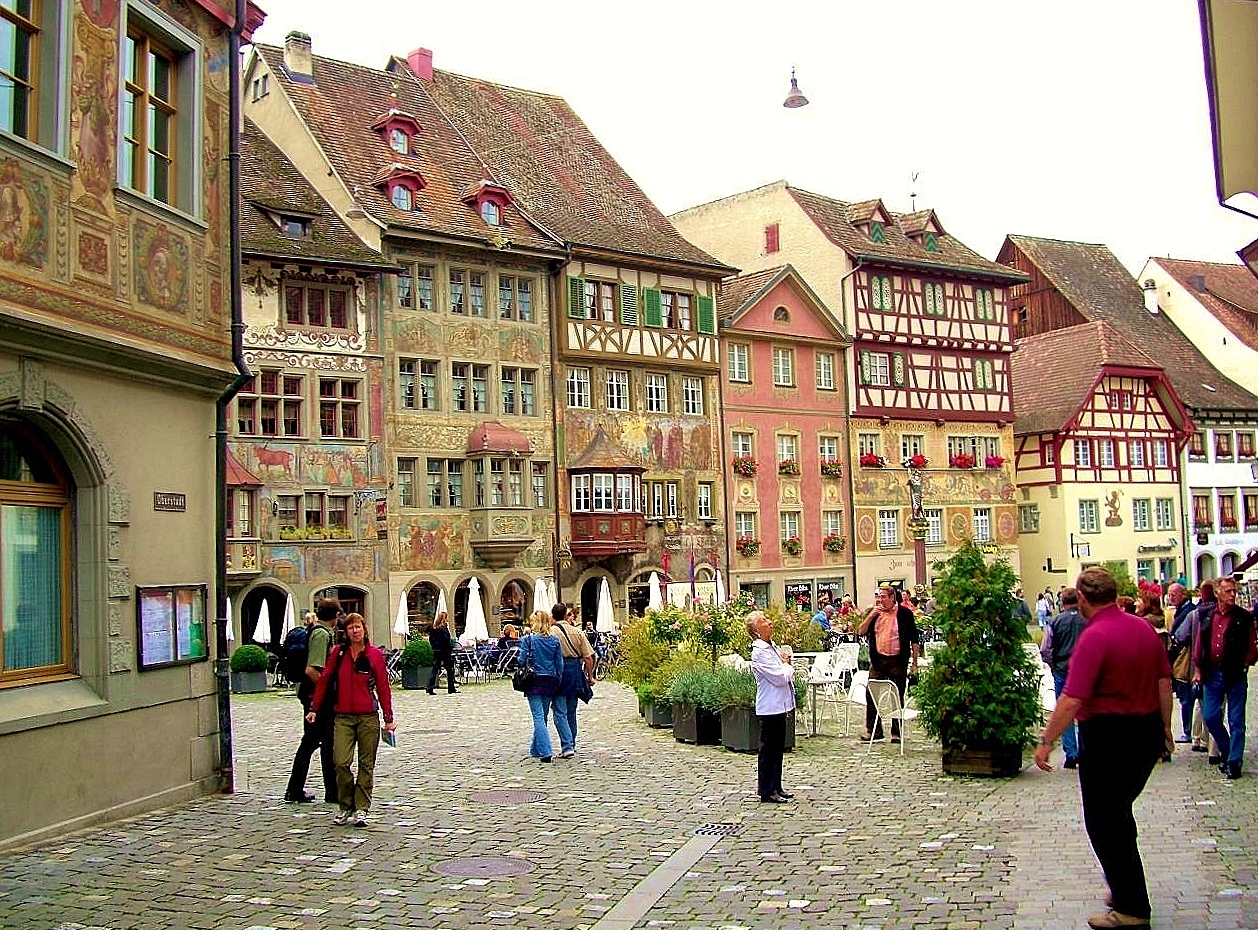 その名の通り旧市街は美しいフレスコ画に囲まれた町並みで中世の世界にタイムスリップした雰囲気が味わえ当日も地元スイスやお隣ドイツから多くの観光客が訪れていました。