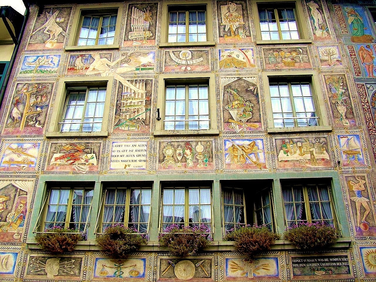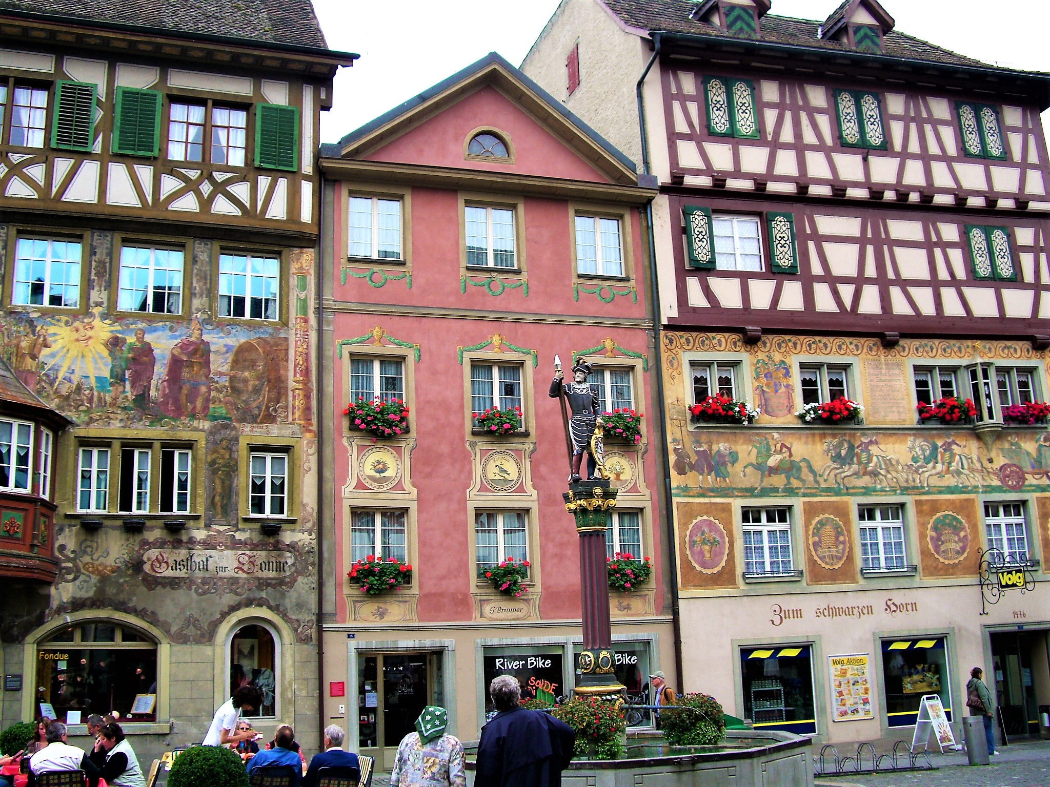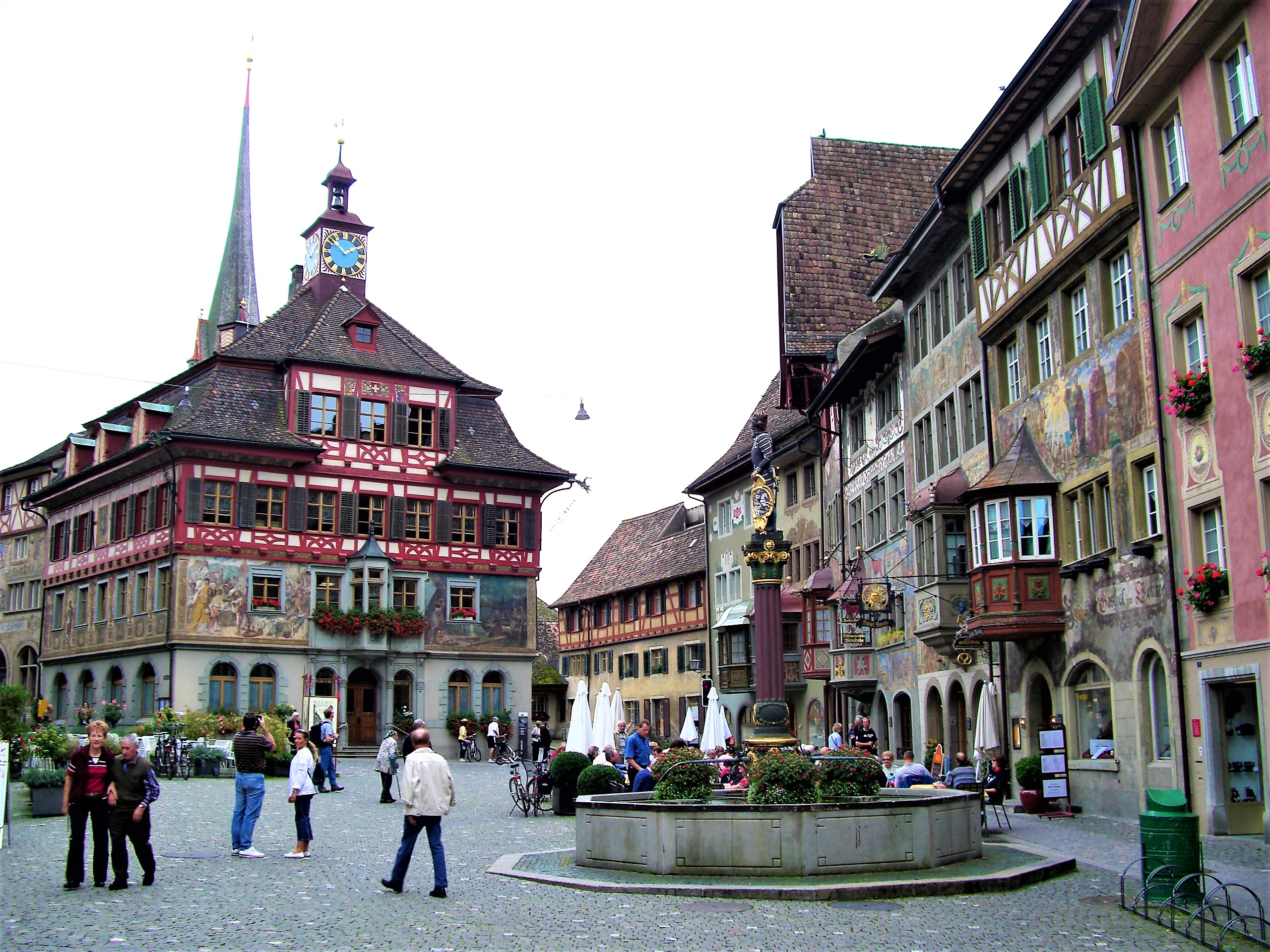 その名の通り旧市街は美しいフレスコ画に囲まれた町並みで中世の世界にタイムスリップした雰囲気が味わえ当日も地元スイスやお隣ドイツから多くの観光客が訪れていました。