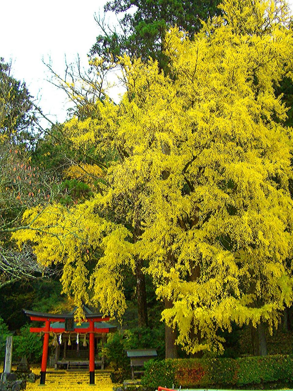 鳥居と大イチョウの木