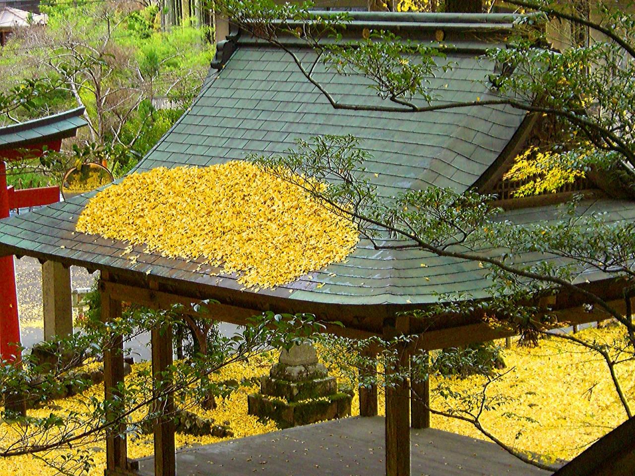 拝殿の屋根にも銀杏の葉が降り積もってました。
