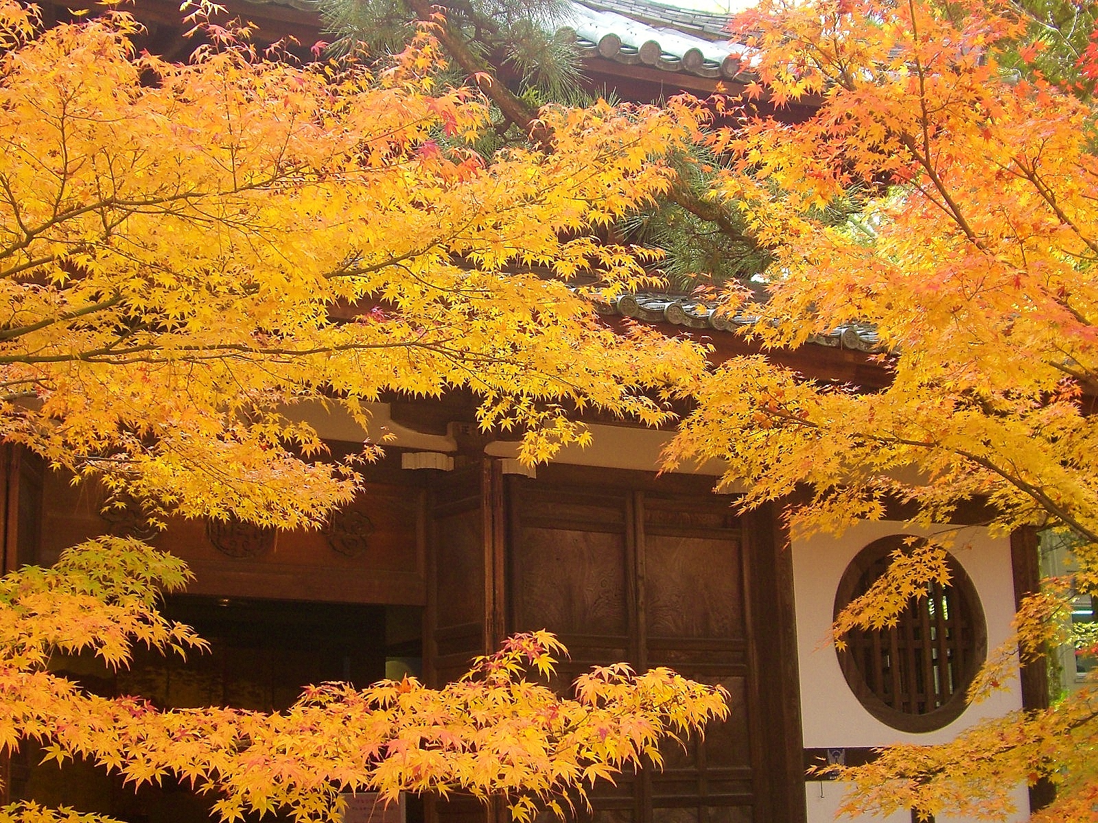 落葉と拝殿